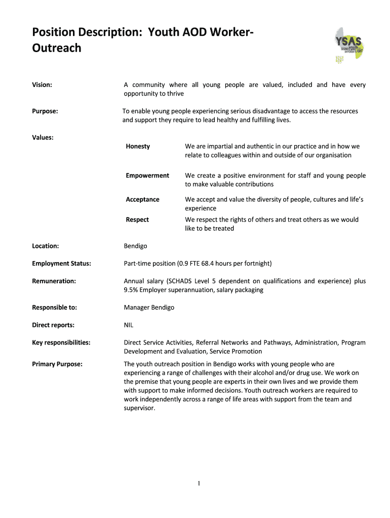 Get the free Position Description: Youth AOD WorkerOutreach