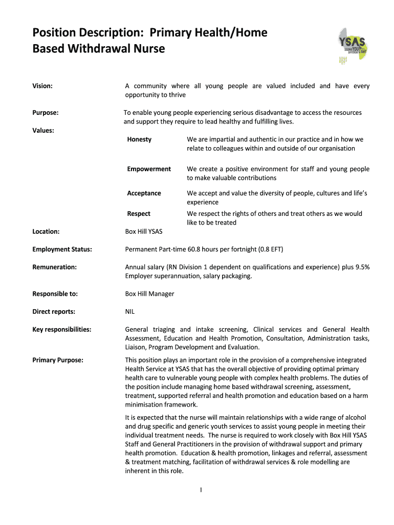 Get the free Position Description: Primary Health/Home