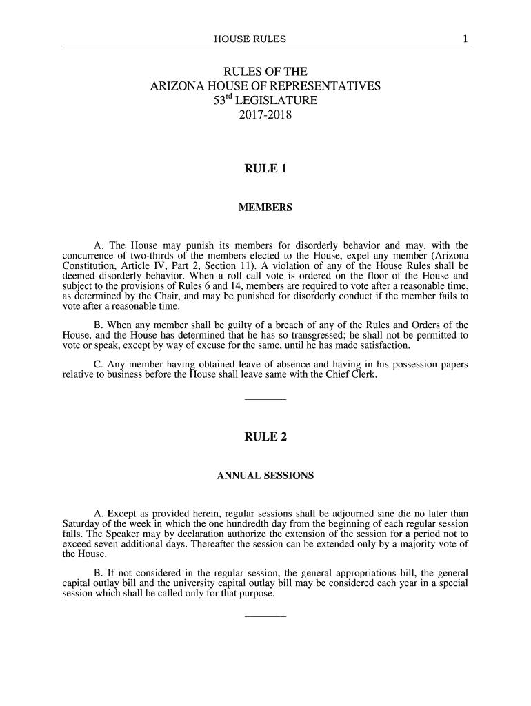 Get the free RULES OF THE ARIZONA HOUSE OF ... - Arizona Legislature