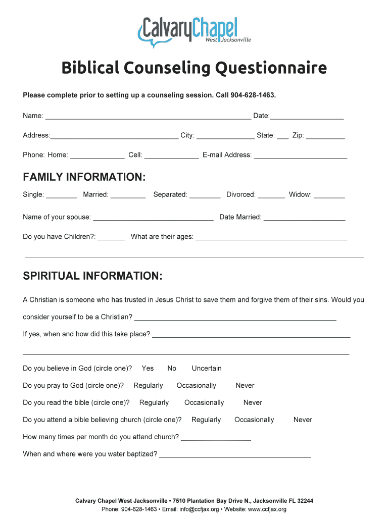 Individuals seeking counseling services that incorporate a biblical approach may be required to complete a biblical counseling questionnaire.