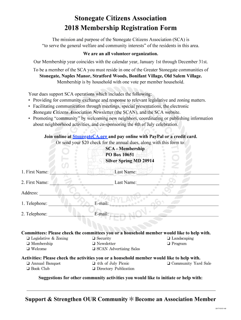 2018 Membership Registration Form