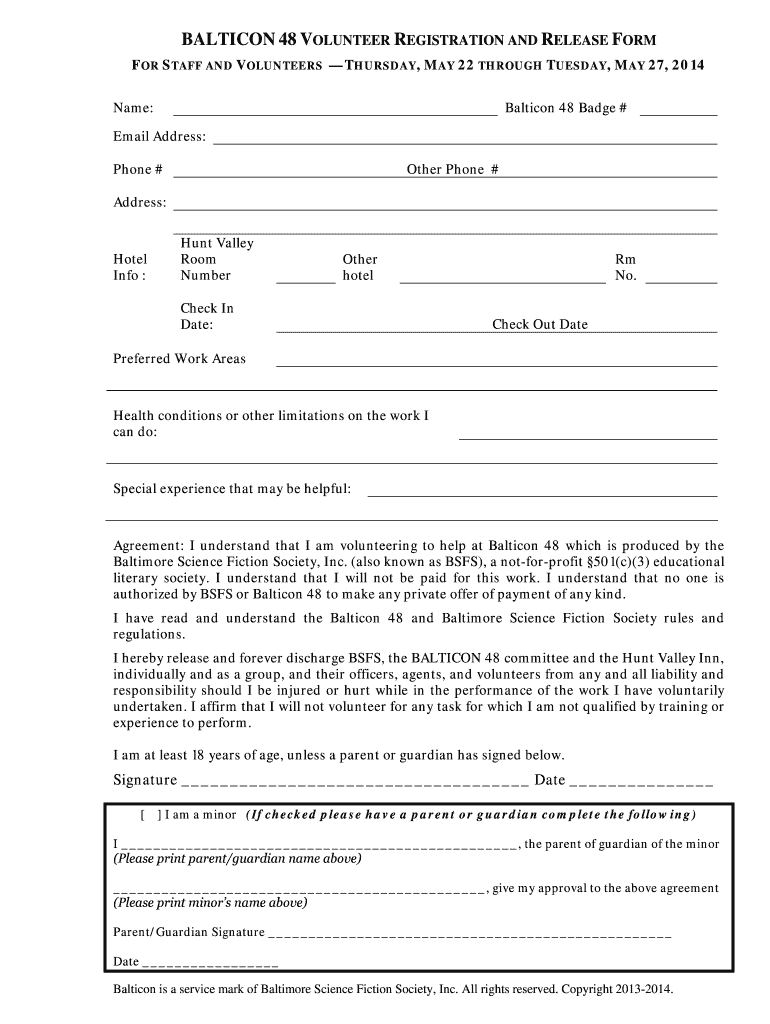 Balticon 48 Volunteer Registration is not the form you're looking for?Search for another form here.