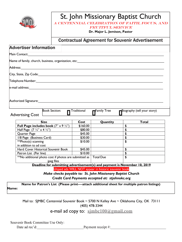 Get the free the souvenir ad contract. Please print and email to sjmbc100 ...