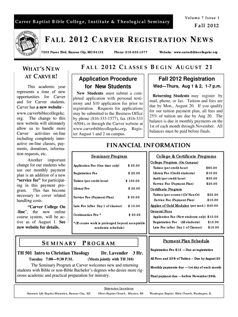 Get the free fall 2012 carver registration news - Carver Baptist Bible College