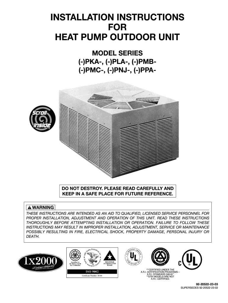Get the free INSTALLATION INSTRUCTIONS FOR HEAT PUMP OUTDOOR ...