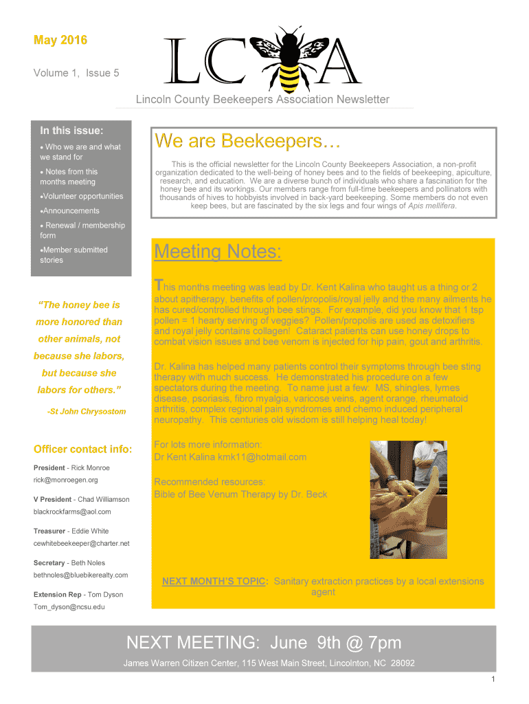 Get the free Lincoln County Beekeepers Association Newsletter