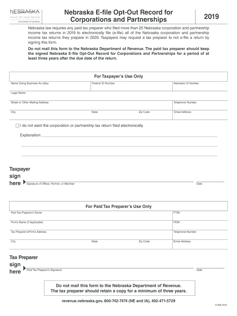 Corporations and Partnerships2019Nebraska law requires any paid tax preparer who filed more than 25 Nebraska corporation and partnership