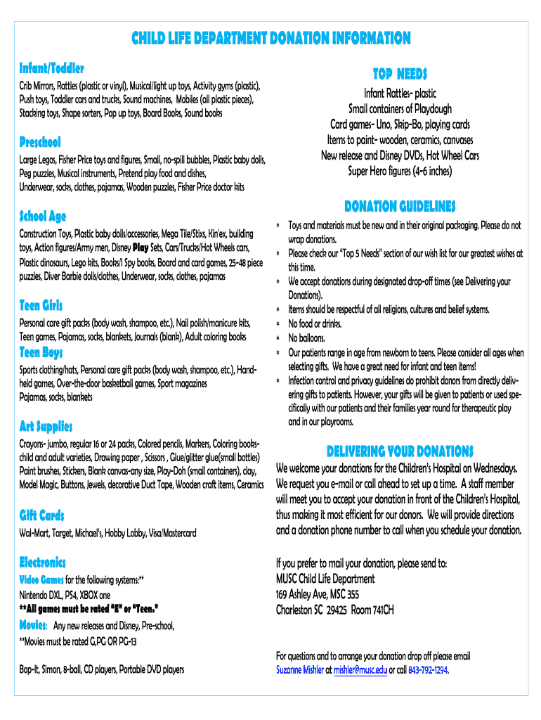 CHILD LIFE DEPARTMENT DONATION INFORMATION