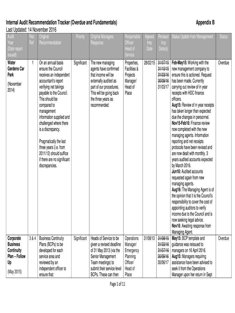 Internal Audit Recommendation Tracker (Overdue and Fundamentals)