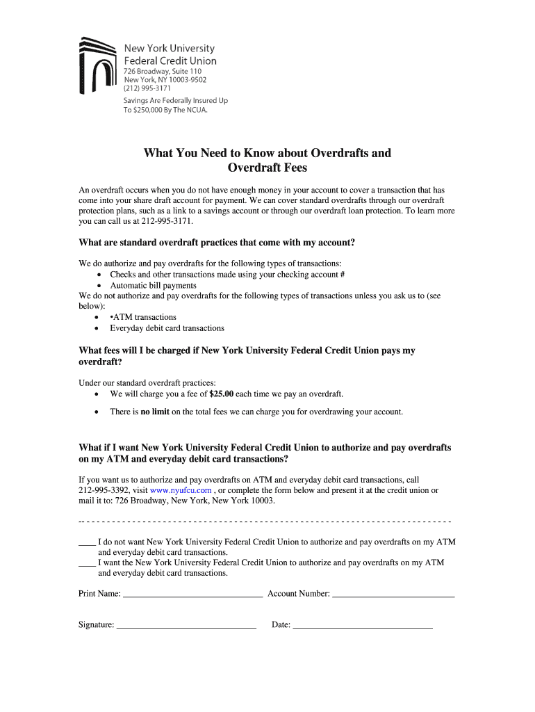 All members of the New York University Federal Credit Union are eligible to apply for nyufcu overdraft protection, but it is not mandatory to have this service.