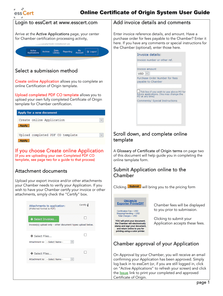 Login to escort at www.esscert.comAdd invoice details and commentsArrive at the Active Applications page, your center