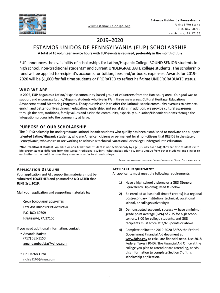 The purpose of the EUPS 17th annual scholarship is to provide financial assistance to deserving students so they can pursue their educational goals.