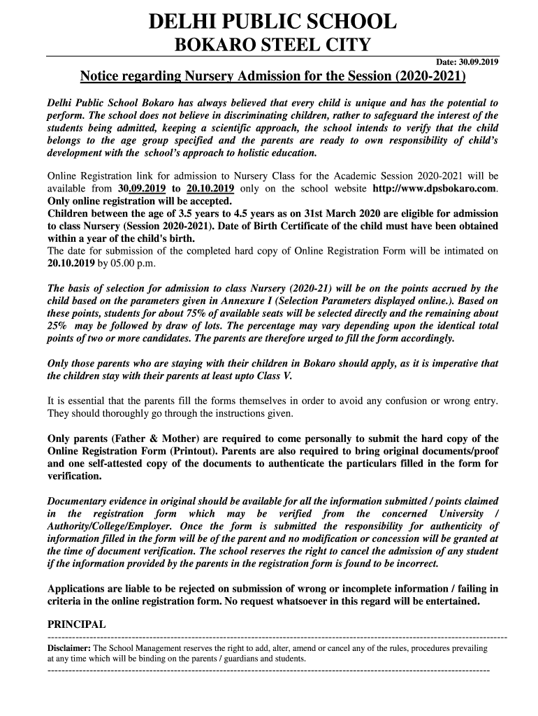 How to fill out notice-nursery admission-2020-2021