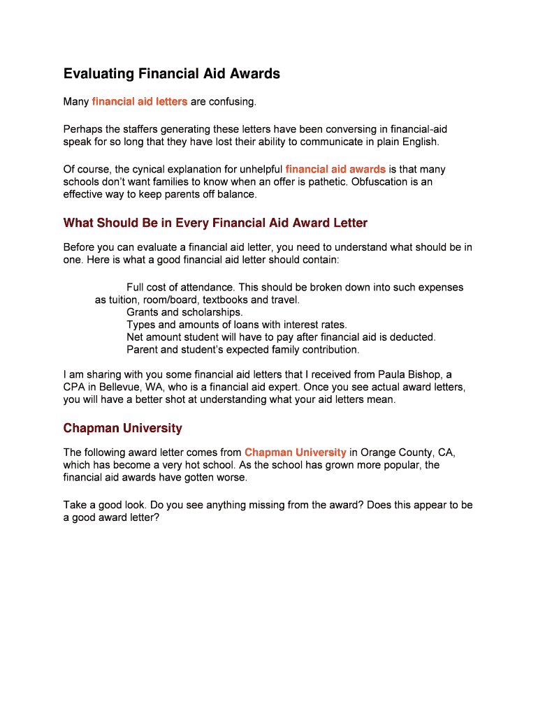 Perhaps the staffers generating these letters have been conversing in financial aid