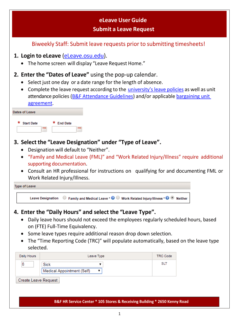 Get the free eLeave User Guide Submit a Leave Request Biweekly Staff ... - busfin osu