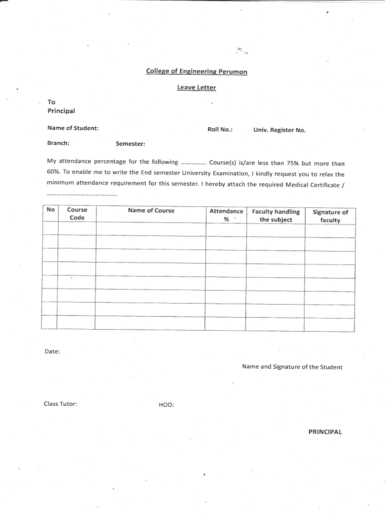 Branch:Roll No.:Univ. Register No. Semester:My attendance percentage for the following ................ Course(s) Islam less
