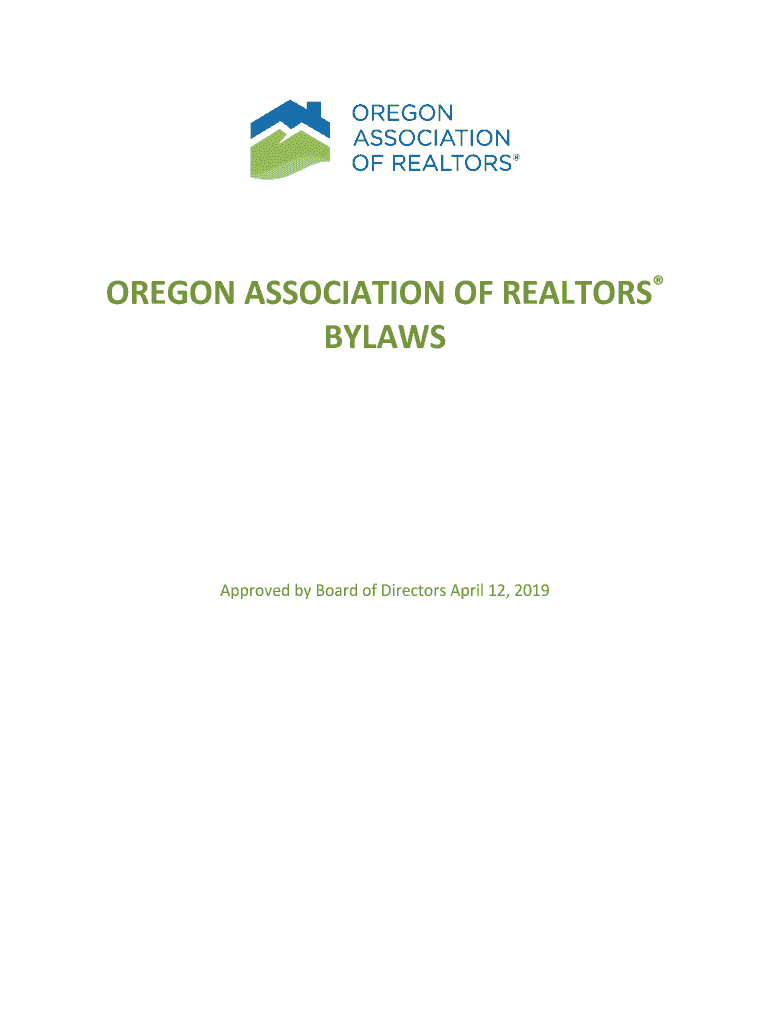 OREGON ASSOCIATION OF REALTORS BYLAWSApproved by Board of Directors April 12, 2019Table of Contents ARTICLE I Name and Purpose ......................................................................................................