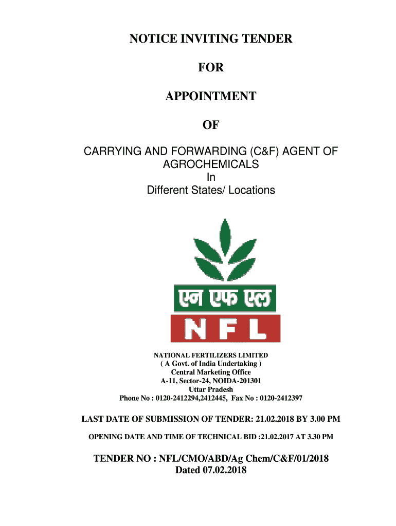NOTICE IN NV ITIN NG TEN UNDER FOR APP OIN TM MEET OF C CARRY KING AN ND FOR AWARD DING (C C&F) AG GENT OF O AGO OCHER MIC ALS In Different States/ Location national N FERTILIZE ERS LIMIT EED(A Govt.