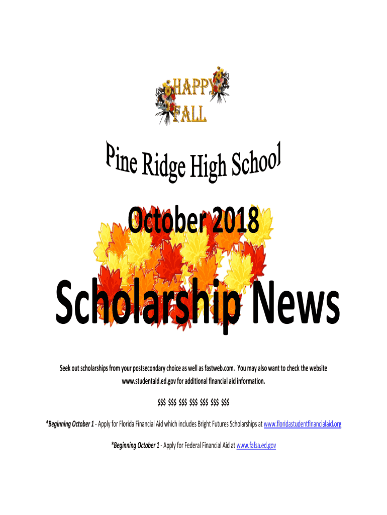 October 2018Scholarship News Seek out scholarships from your postsecondary choice as well as fastweb.com. You may also want to check the website www.studentaid.ed.gov for additional financial aid