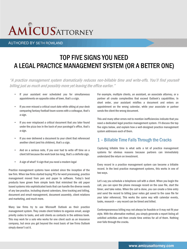 A practice management system dramatically reduces nonbillable time and write-offs. You'll find