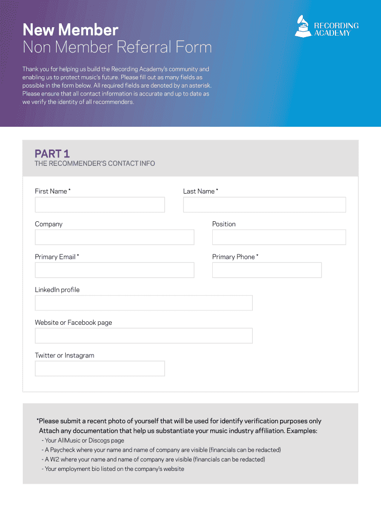 Get the free New Member Non Member Referral Form - GRAMMY.com