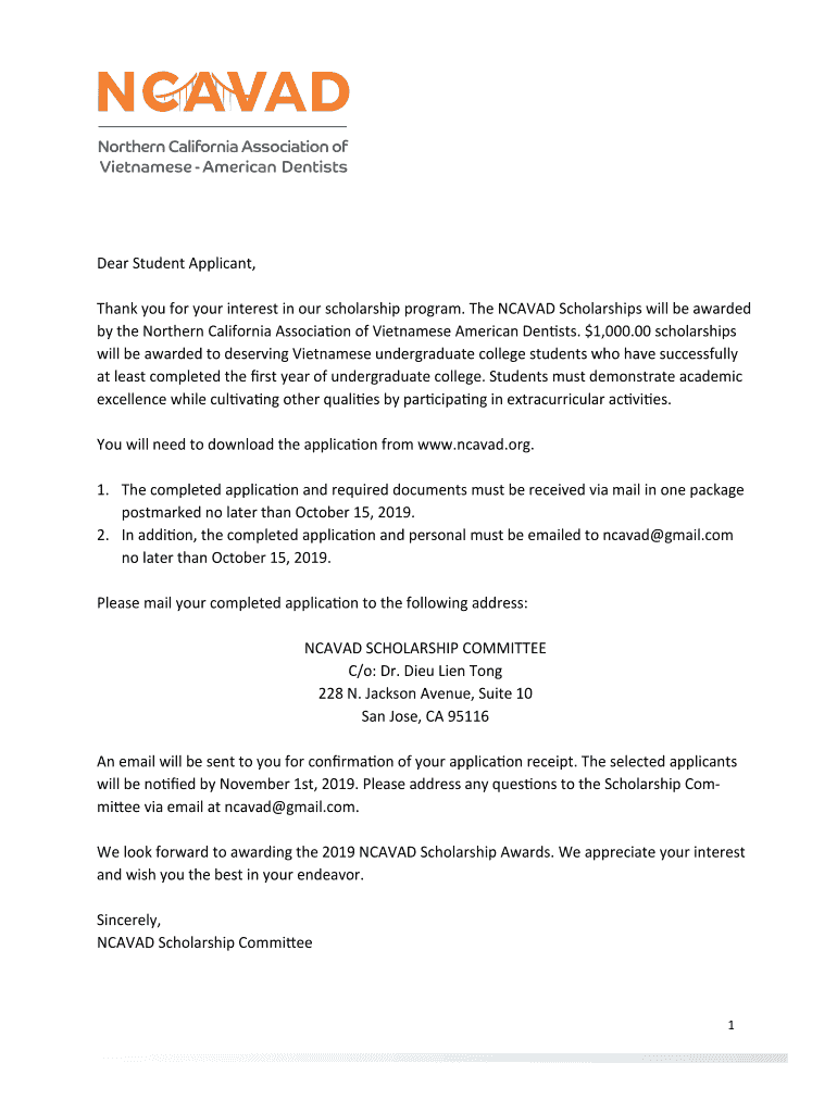 by the Northern California Association of Vietnamese American Dentists. $1,000.00