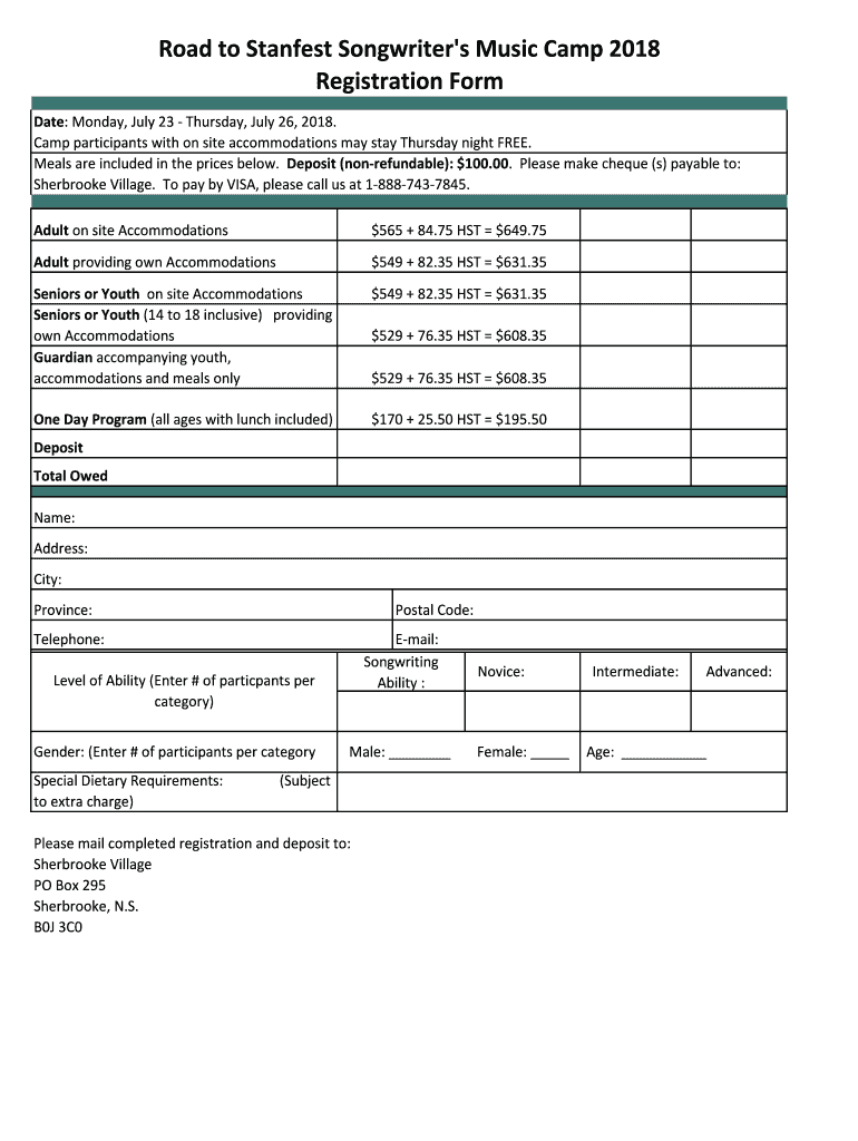 Get the free Road to Stanfest Songwriter's Music Camp 2018 Registration Form - sherbrookevillage ...
