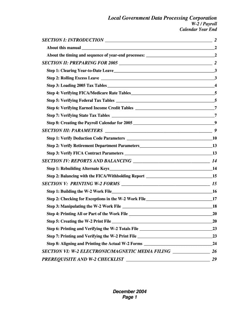 The W-2 Year-End Processing Manual is an essential guide for the preparation and printing of W-2 forms at the end of the calendar year. This manual plays a critical role in payroll tax reporting and ensures compliance with IRS regulations. Typically utilized by payroll administrators, the manual serves as an indispensable resource for accurate tax documentation.