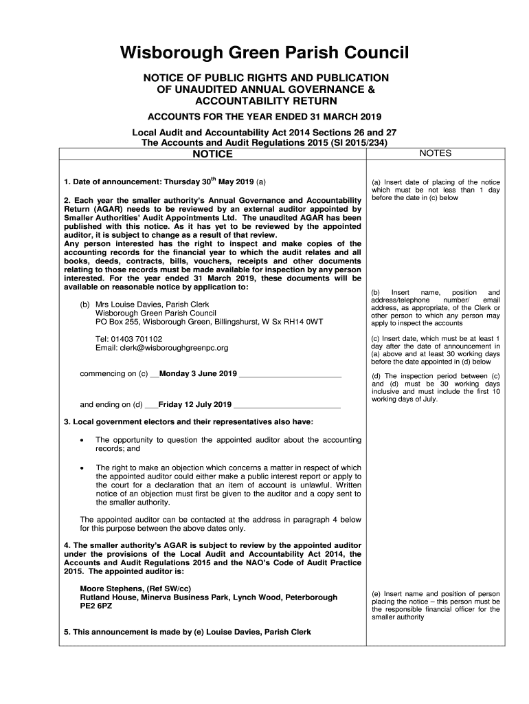 Get the free Notice of Public Rights and Publication - Wisborough Green