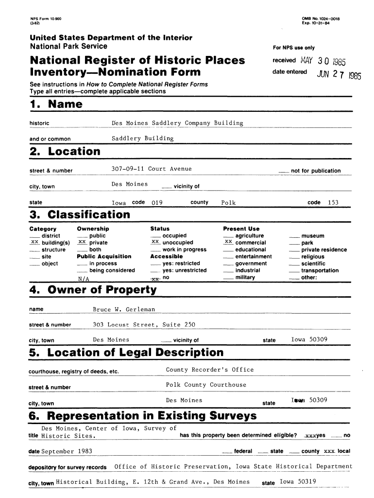 NPS Form 10900 (382)OMB No. 1024OO18 Exp. 103184United States Department of the International Park ServiceNow NPS use onlyNational Register of Historic Places InventoryNomination Form received MAY