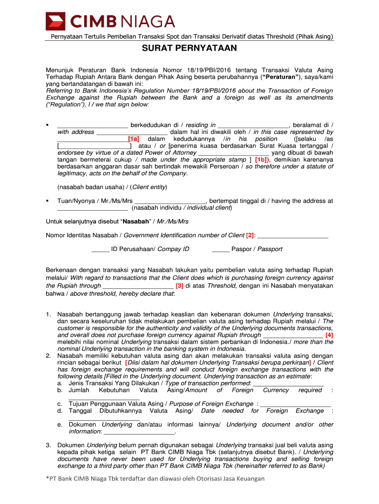 Individuals or entities who purchase foreign currency above a certain threshold are required to file the formulir pembelian valas di.