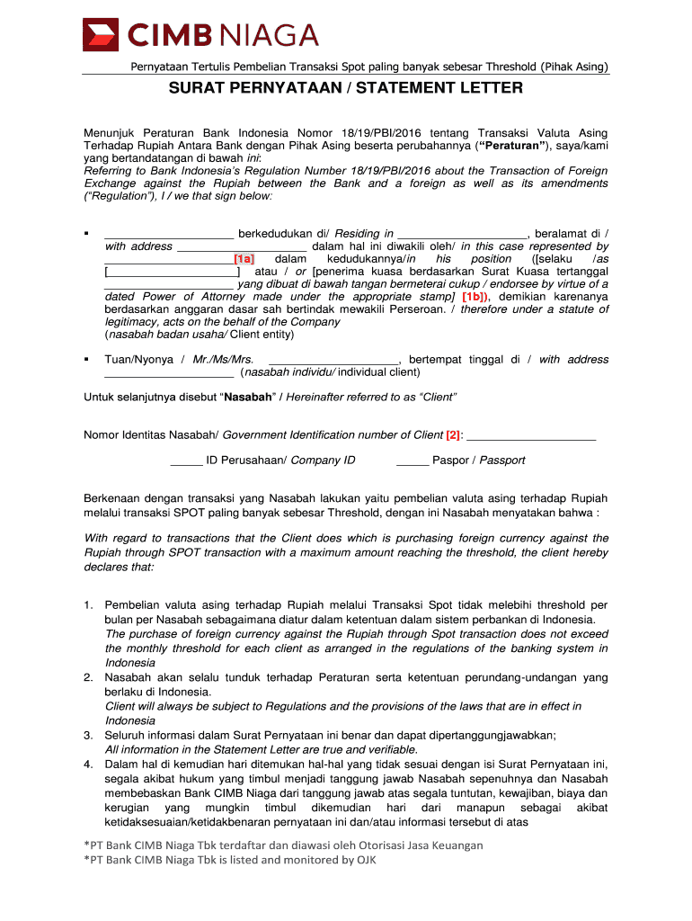 Pernyataan Textiles Plebeian Transpose Spot paling banyan seesaw Threshold (Peak Using)SURAT PERNYATAAN / STATEMENT LETTER Menunjuk Perturb Bank Indonesia Noor 18/19/PBI/2016 tenting Transpose Value
