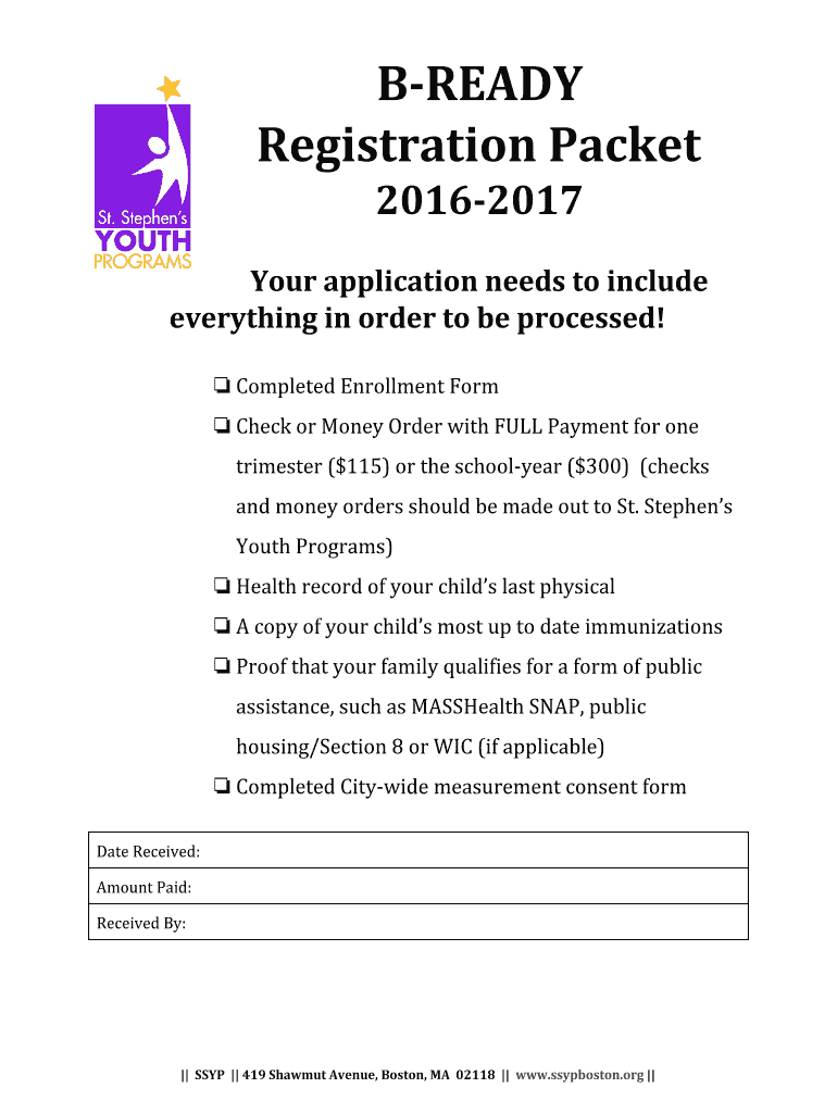 Get the free BREADY Registration Packet - St. Stephen's Youth Programs