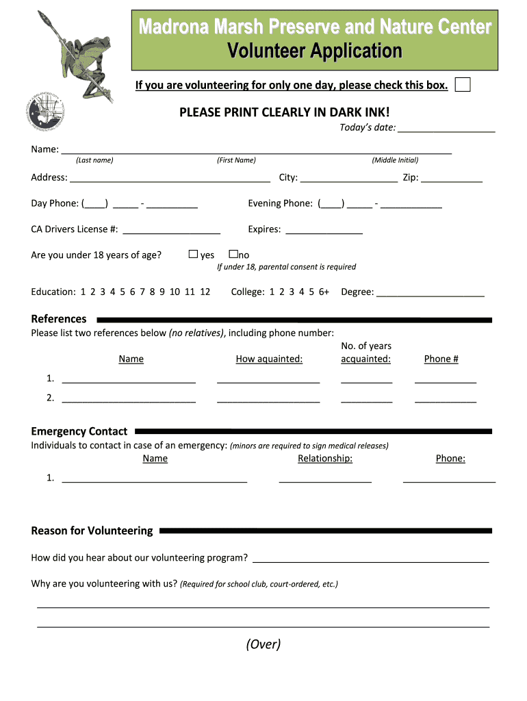 Get the free Apply to be a volunteer at the Madrona Marsh Preserve and ...