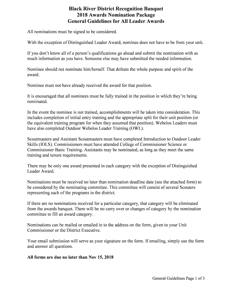 2018 Awards Nomination Package