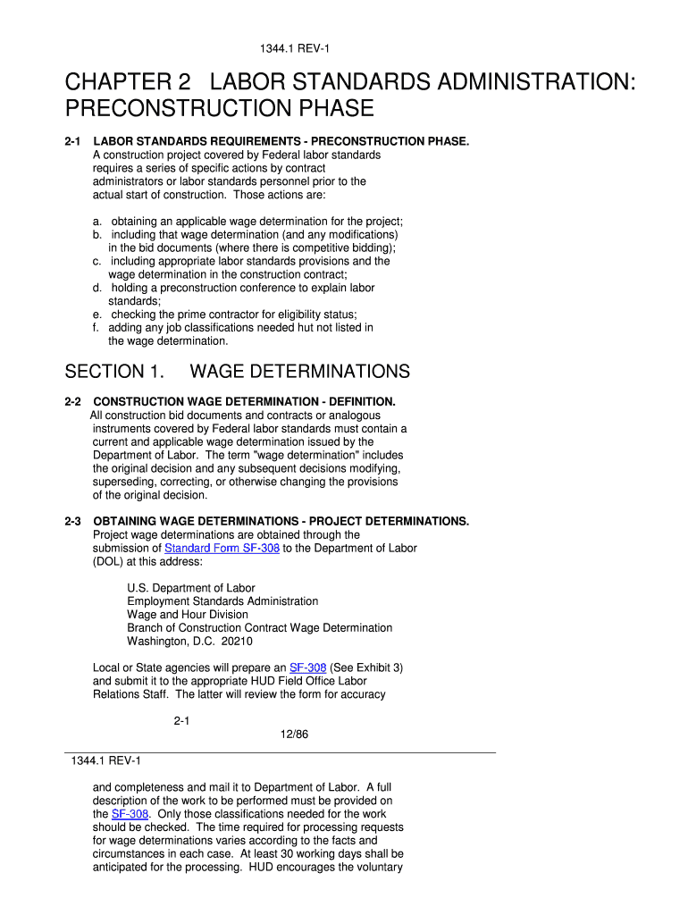 1344.1 REV1CHAPTER 2 LABOR STANDARDS ADMINISTRATION: PRECONSTRUCTION PHASE 21LABOR STANDARDS REQUIREMENTS PRECONSTRUCTION PHASE. A construction project covered by Federal labor standards requires