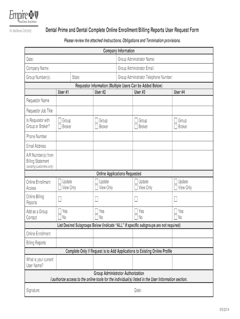 Get the free Empire Blue Cross Blue Shield Dental Prime and Dental Complete Online Enrollment/Bil...