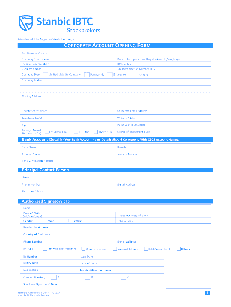 Member of The Nigerian Stock ExchangeCORPORATE ACCOUNT OPENING FORM