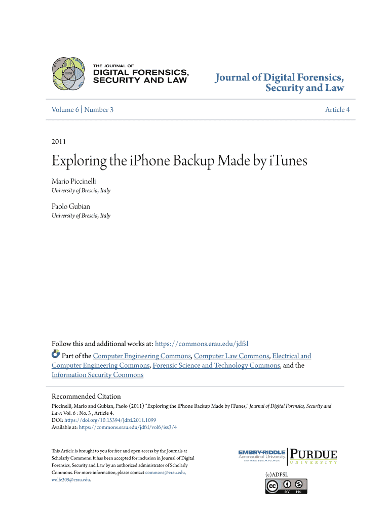 Journal of Digital Forensics, Security and Law Volume 6 Number 3Article 42011Exploring the iPhone Backup Made by iTunes Mario Piccalilli University of Brescia, ItalyPaolo Nubian University of Brescia,