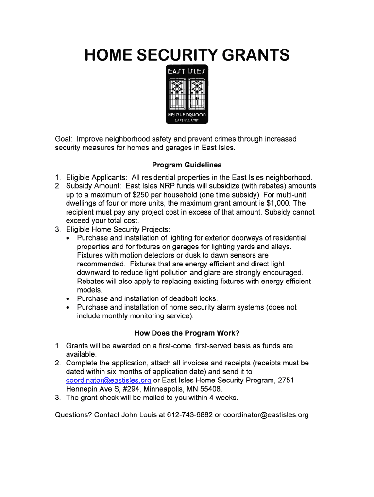 HOME SECURITY GRANTSGoal: Improve neighborhood safety and prevent crimes through increased