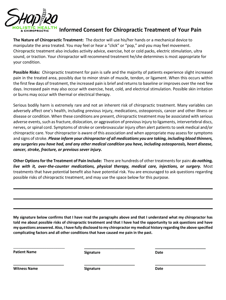 Informed Consent for Chiropractic Treatment of Your Pain