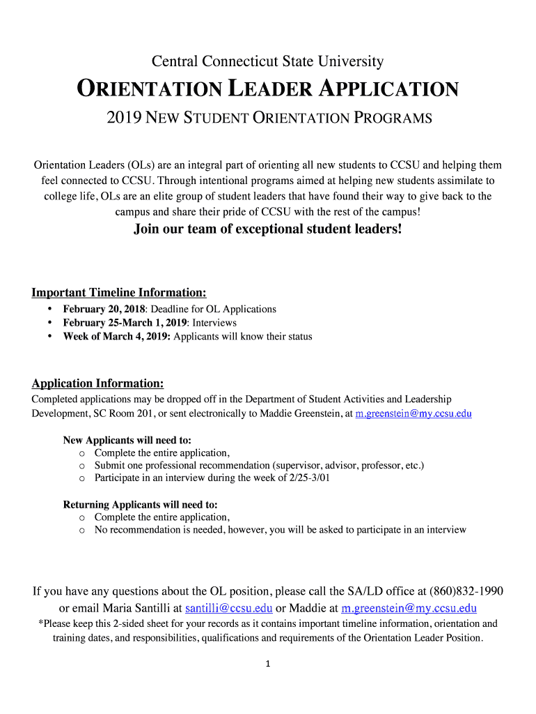 Central Connecticut State UniversityORIENTATION LEADER APPLICATION