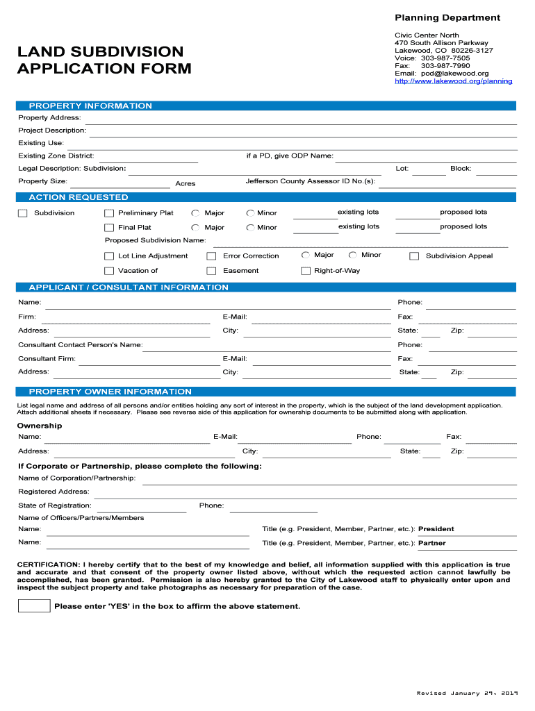 http://www.lakewood.org/planningLAND SUBDIVISION