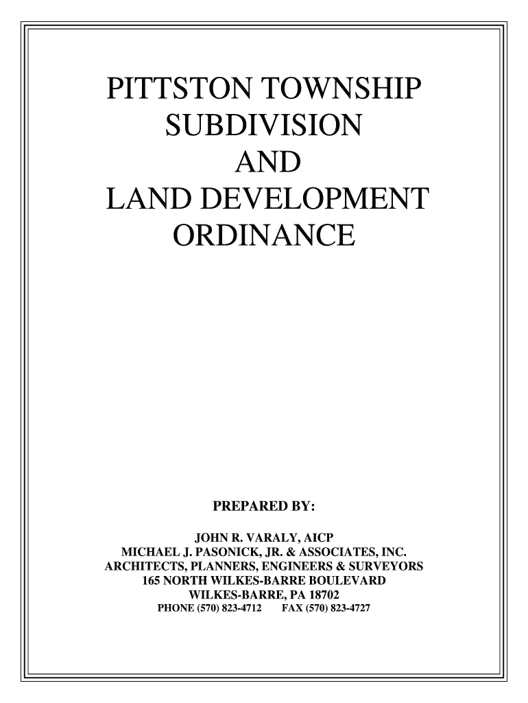 Get the free pittston township subdivision and land development ordinance