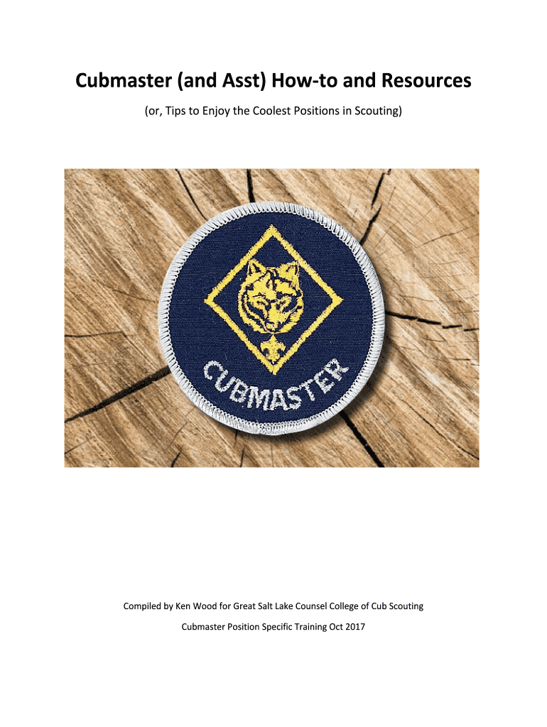 Cub master(Adams)HowtoandResources (or, TipstoEnjoytheCoolestPositionsinScouting) CompiledbyKenWoodforGreatSaltLakeCounselCollegeofCubScouting CubmasterPositionSpecificTrainingOct2017TableofContents