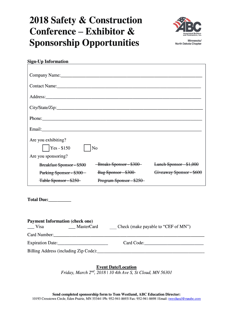 ABC 2018 Safety & Construction Conference Exhibitor & Sponsorship Opportunities Learn Safety. Learn Business. Learn Together. Over 100 commercial contractors attend MN/ND ABCs Safety & Construction