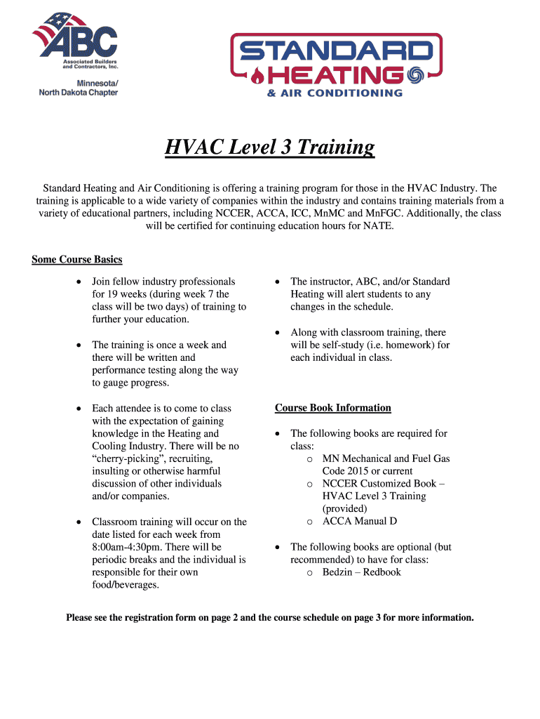Standard Heating and Air Conditioning is offering a training program for those in the HVAC Industry. The