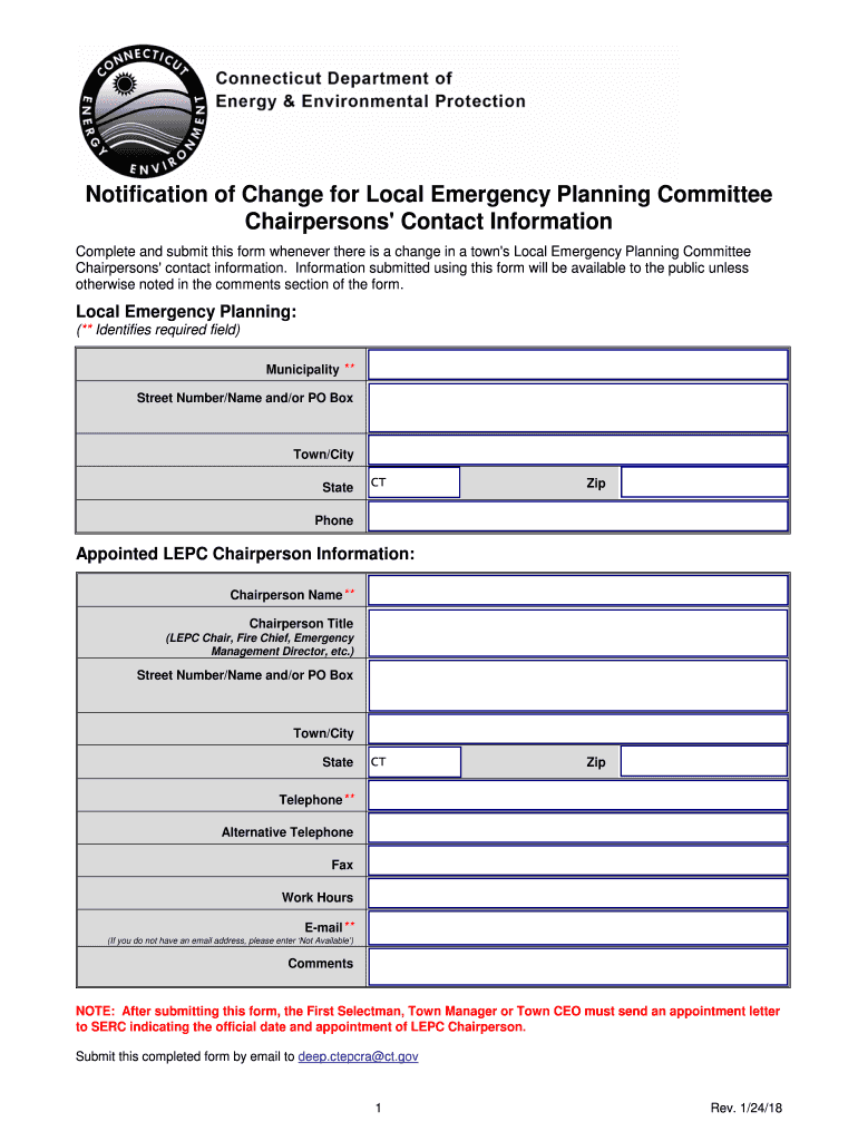 Complete and submit this form whenever there is a change in a town\'s Local Emergency Planning Committee