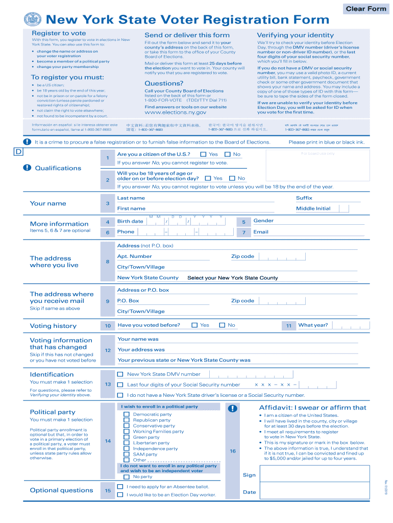 New York State Voter Registration Form Register to vote With this form, you register to vote in elections in New York State. You can also use this form to: change the name or address on your voter