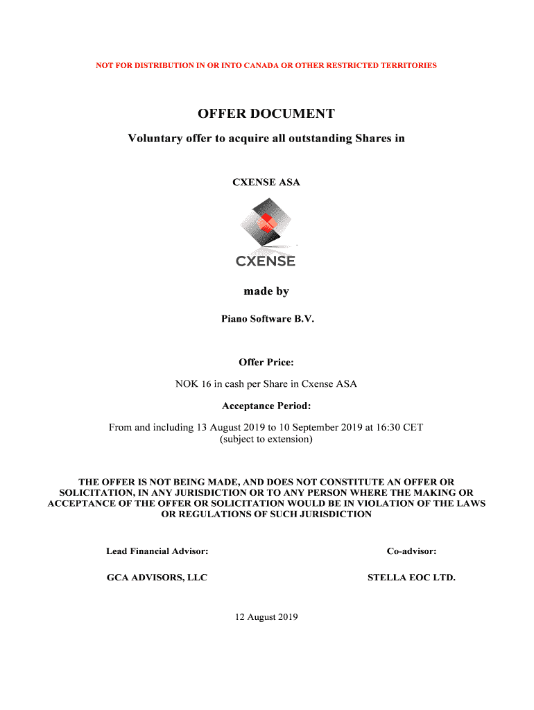 NOT FOR DISTRIBUTION IN OR INTO CANADA OR OTHER RESTRICTED TERRITORIESOFFER DOCUMENT